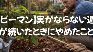 ピーマンを育てていると、花は順調に咲くのに小さな実が育たずに落ちてしまうことがあります。見た目は元気そうでも、思ったように実が残らないと焦りが出てきます。 水や肥料が足りないのか、それとも受粉の問題なのかと原因を探したくなりますが、落ち着い...