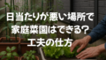 「日当たりが弱い=家庭菜園に不向き」ではなく、適した野菜を選ぶことが成功の鍵です。