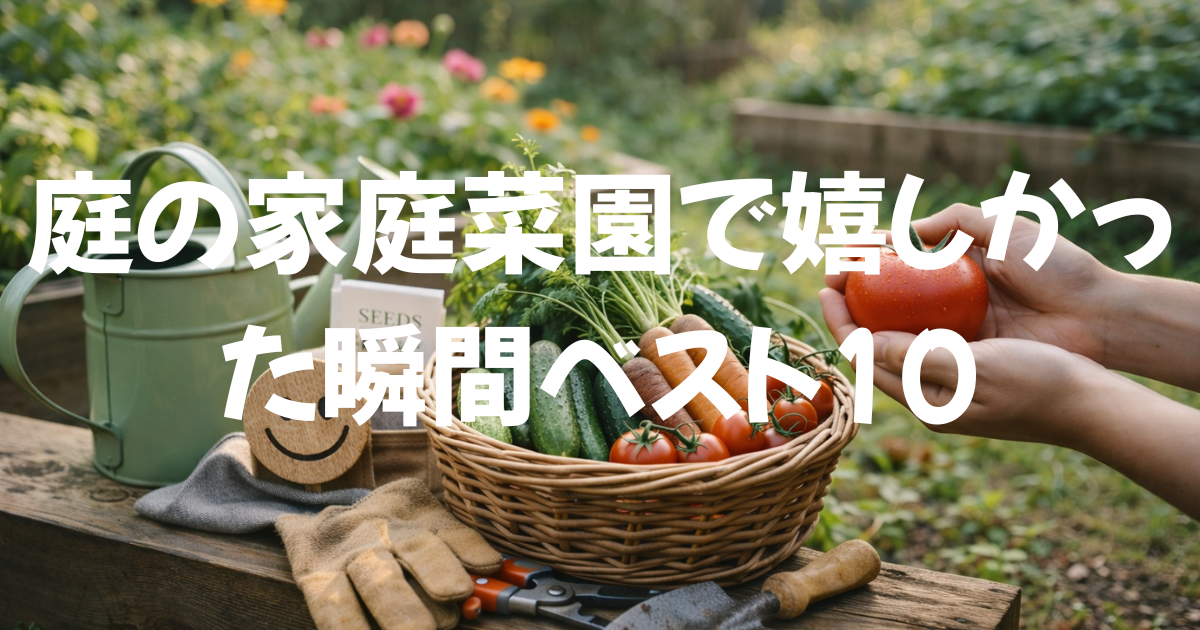 この記事では、庭の家庭菜園で特に嬉しかった瞬間を、ベスト10形式でまとめました。これから始める方にも、「こんな楽しみ方があるんだ」と感じてもらえたらうれしいです。