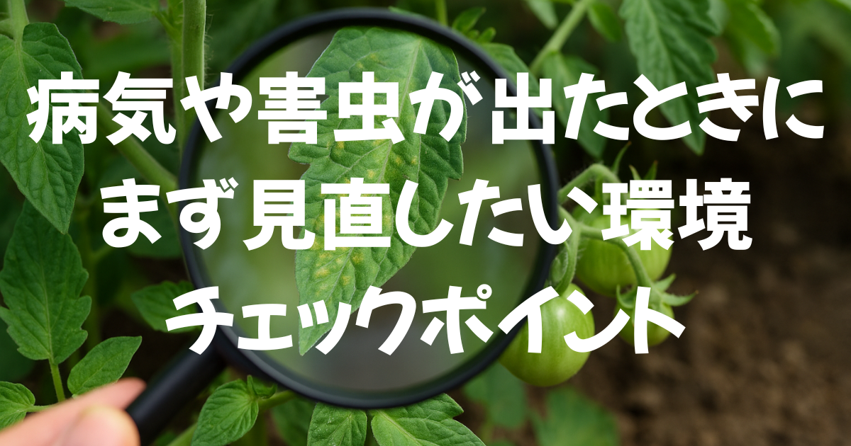 家庭菜園で「葉が黄色い」「虫が急に増えた」「病気っぽい斑点が出た」といったトラブルが起きたとき、すぐに薬剤を使う必要はありません。多くの場合、環境を少し整えるだけで改善することが多く、原因をじっくり見直すことが大切です。この記事では、初心者でもすぐにチェックできる“環境の見直しポイント”をわかりやすくまとめました。