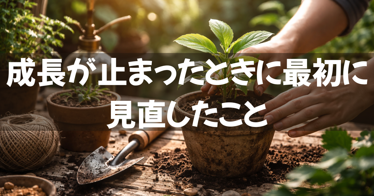 肥料を足したり場所を変えたり手を入れるほど余計に分からなくなります。何かを間違えている気がするのに原因が見えない時間が続きました。そこで対処を考える前に見る順番を決めることにしました。