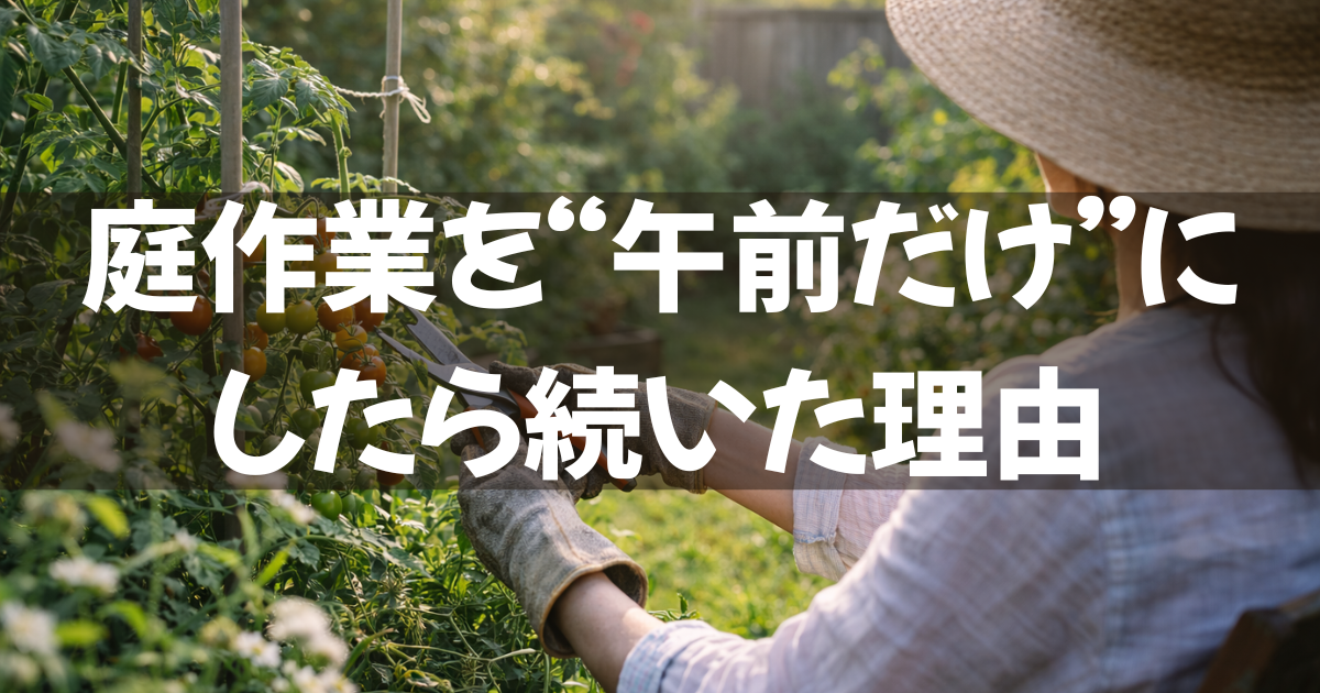 あるとき、庭作業は午前だけと決めてみました。中途半端になるのではと不安でしたが、試してみることにしました。