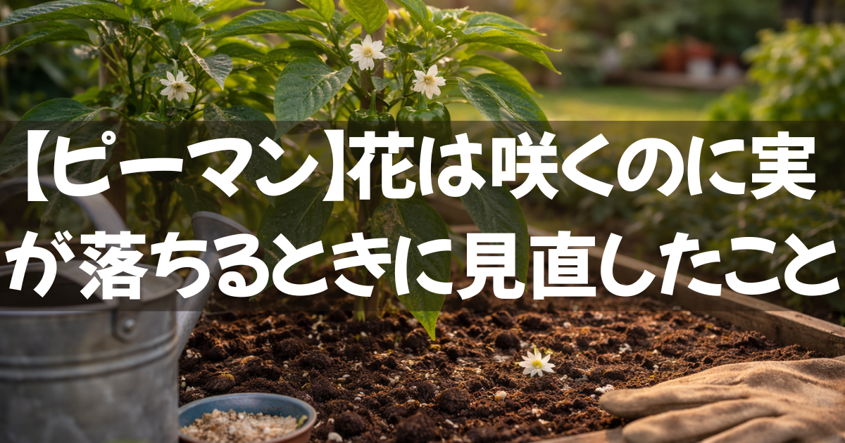 ピーマンを育てていると、花は順調に咲くのに小さな実が育たずに落ちてしまうことがあります。見た目は元気そうでも、思ったように実が残らないと焦りが出てきます。