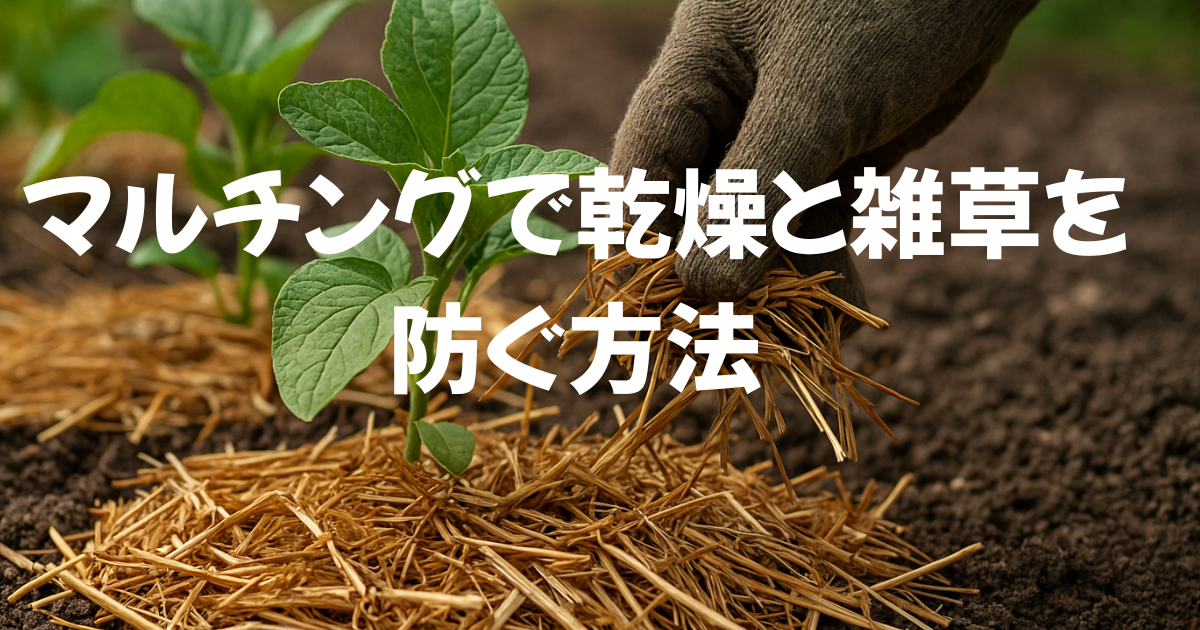 プランターや小さな家庭菜園では、平日に土が乾きやすく、水やりの負担が増えてしまいます。週末だけ作業を楽しみたい忙しい社会人にとって、この「乾燥問題」と「雑草問題」は小さくありません。そこで役立つのがマルチングです。土を覆うだけで環境が安定し、野菜が育ちやすくなる便利な方法です。